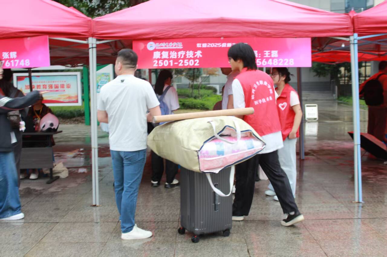 9月13日清晨,医学技术系迎新工作组提前到岗,在报到现场设置咨询台、指引牌,并安排志愿者一对一引导新生完成各项流程。系部领导、辅导员及学生志愿者们全程驻守,耐心解答疑问,帮助新生搬运行李、熟悉校园环境。